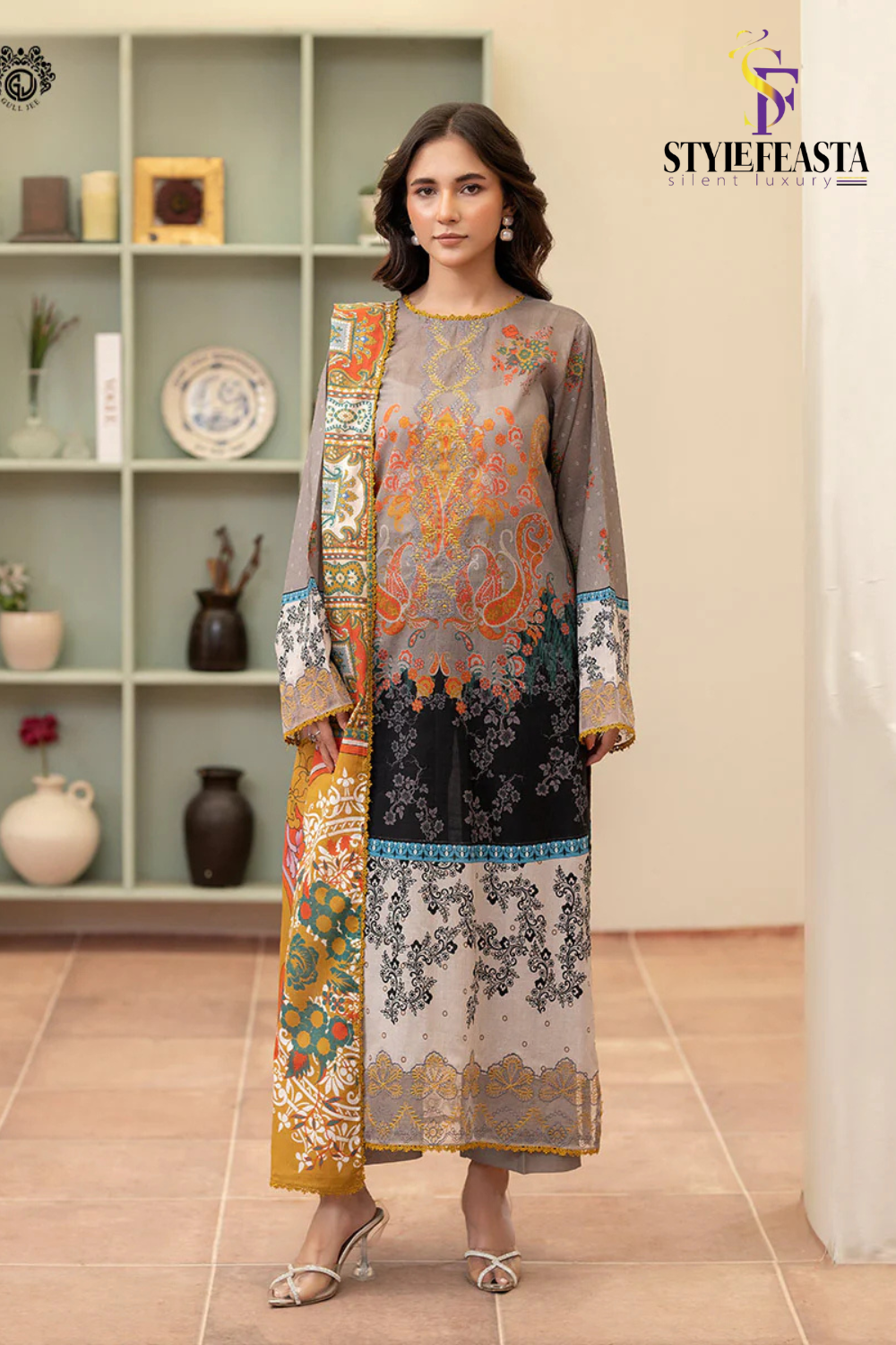 Morja by Gullji Cotton Lawn 3PC Unstitched Collection with Embroidered Neck & Chiffon Dupatta