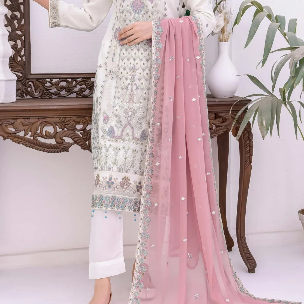 • Unstitched 3 Piece Dress – Embroidered Shirt, Trousers & Dupatta